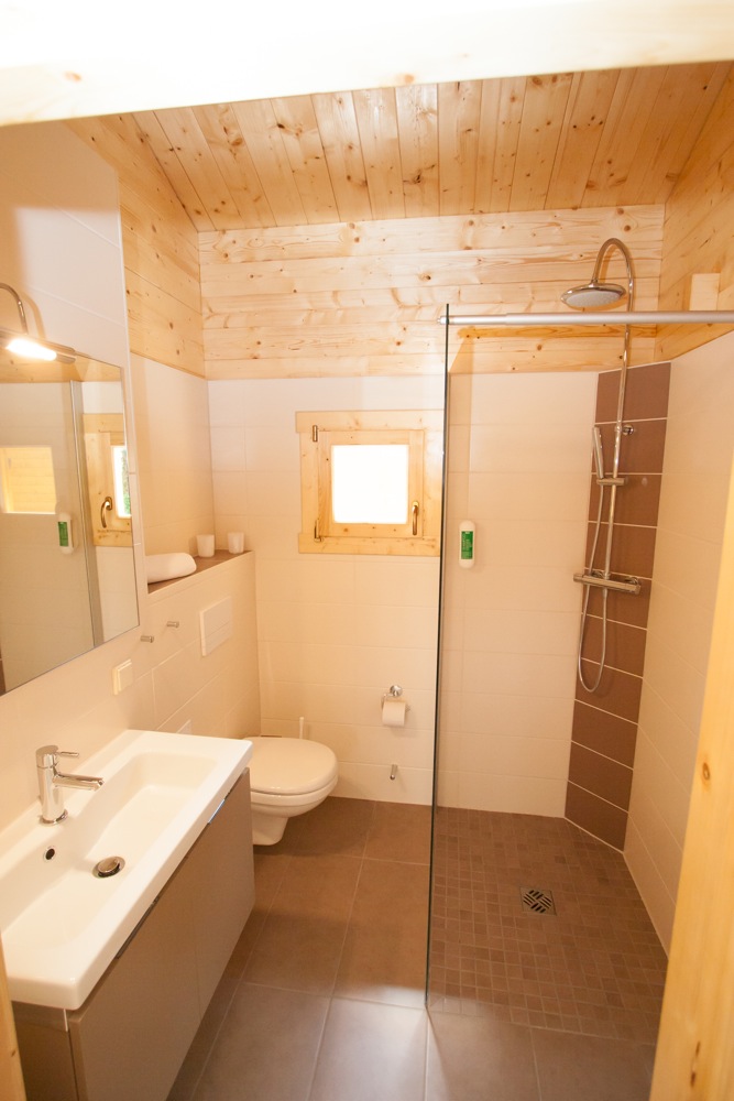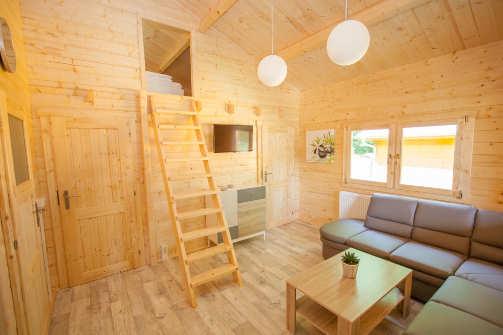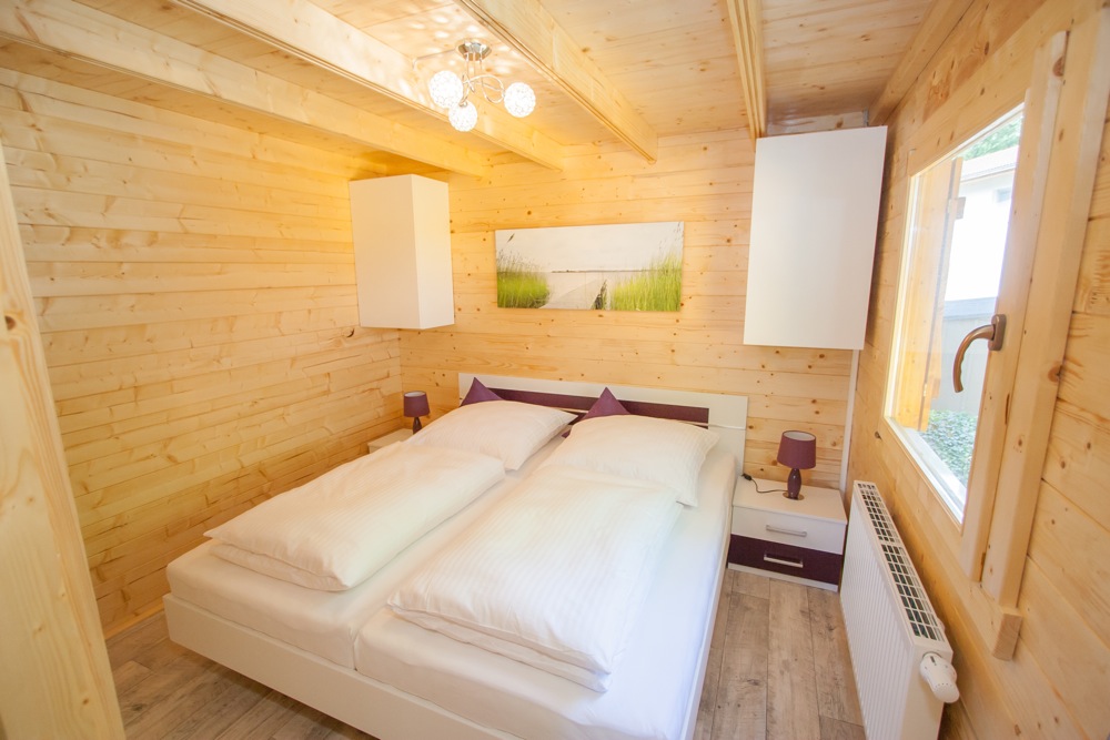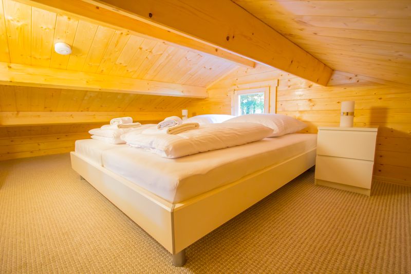 Jedes unserer Ferienhaeuser hat eine Gesamtgroesse von 60 m² inkl. ueberdachter Terrasse und verfuegt ueber einen gemuetlichen Wohn-Essraum, 2 Schlafzimmern mit Doppelbett, 1 Schlafboden mit Doppelbett und ein modern eingerichtetes Bad.
